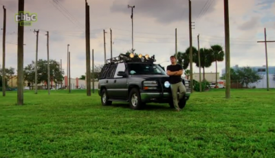 One of the team "chases storms" following hurricanes around the USA, collecting weather data in a specifically built car.