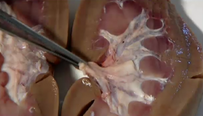Alice dissects a pigs reproductive organs to demonstrate the anatomical makeup of a woman's equ...